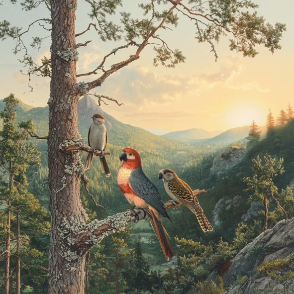 Они сидели на ветке, а когда солнце стало клониться к закату, кукушонок предложил: «Ночуйте у меня? « – и воробей с попугаем согласились.