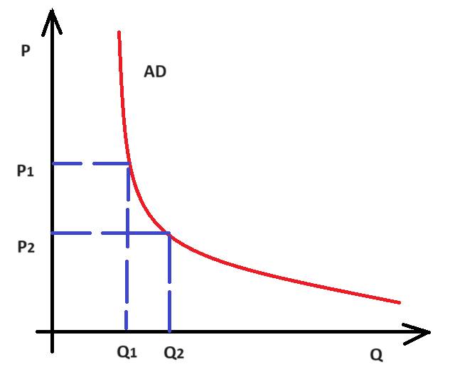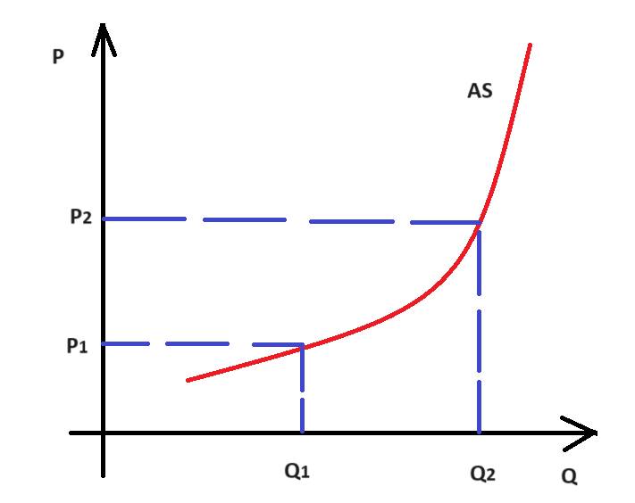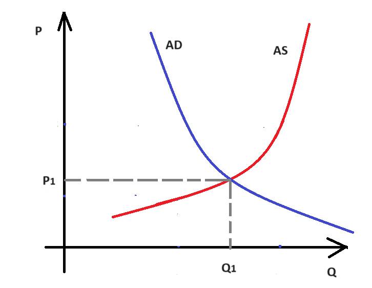 На данном рисунке, так же, как и на графиках кривой спроса и предложения, P (price) означает цену, Q (quantity) – количество, AS (supply) это кривая предложения, AD (demand) – кривая спроса.