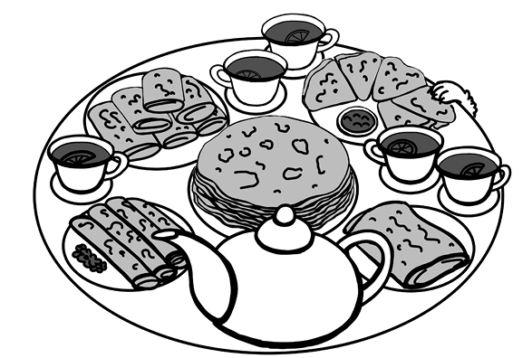 Видение Господа Бога в России включало всякие другие вкусняшки, как, например, сгущенка, шоколад, сыр (сыр на pancakes??), ветчина (оба-на! Это более странно, чем сыр!), икра и в принципе абсолютно все, кроме лимонного сока. Я ни разу не видел, как русский человек добавляет лимонный сок и сахар.