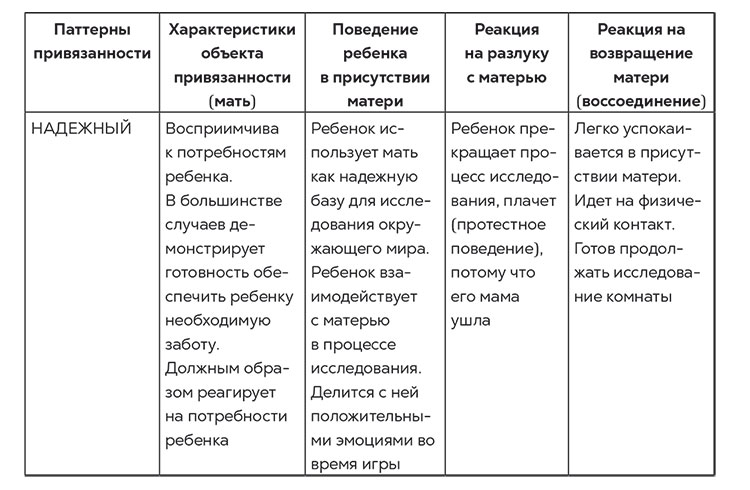 «Надежность», «забота» и «защита» – это слова, которые характеризуют надежный паттерн привязанности, подразумевающий, что ребенок чувствует себя защищенным и в безопасности, когда познает окружающий мир.