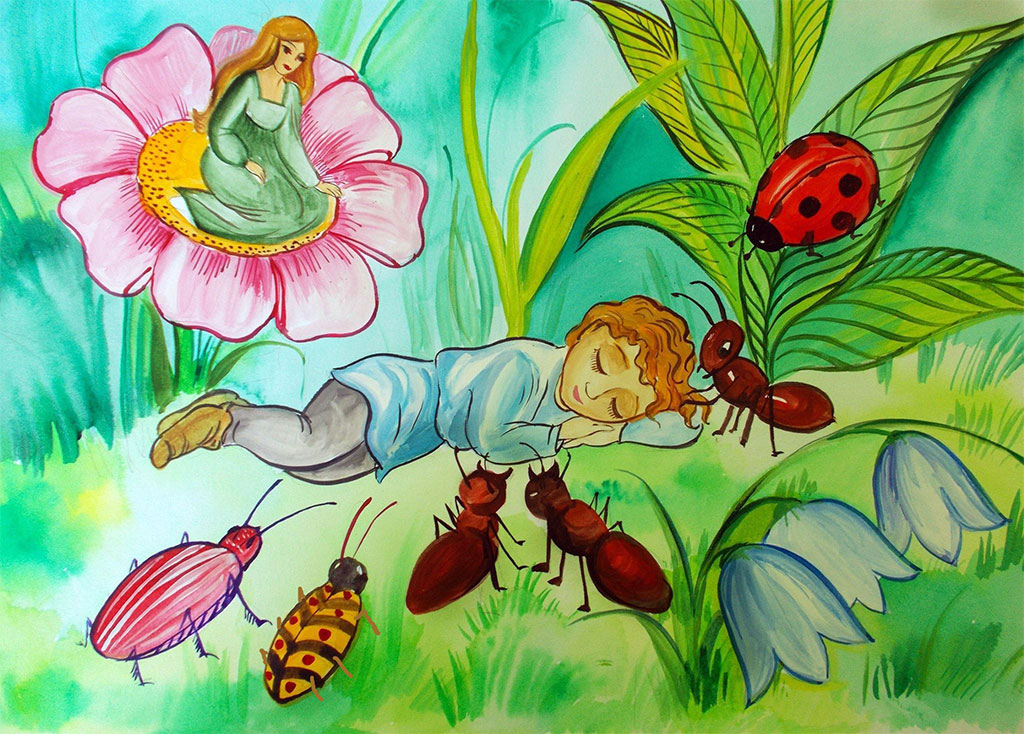 Это была очень красивая с прозрачными крыльями девушка. Она подлетела к нему, отодвинула от муравья, держащего его за руку.