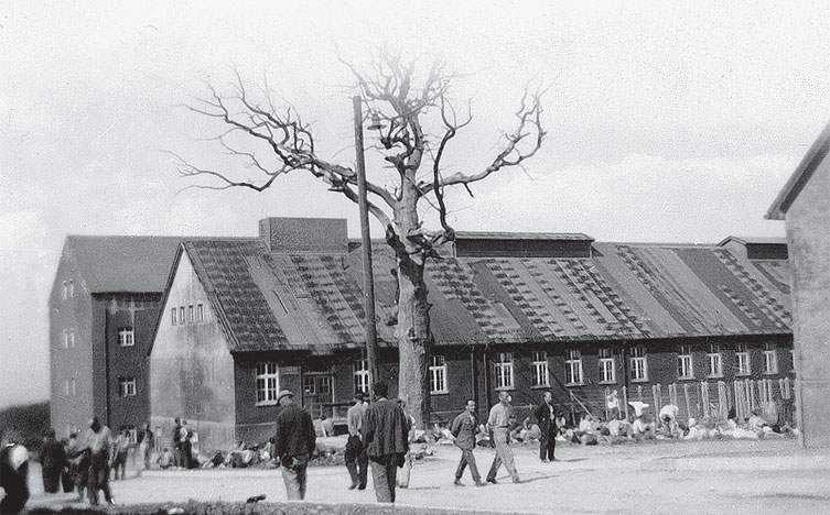 Для нацистов, создававших Бухенвальд, дуб Гёте олицетворял живую связь со славнейшими страницами истории Германии – истории, доказывавшей культурное превосходство немецкого народа и одновременно устремлявшейся к Тысячелетнему рейху их мечтаний[5]. Узники же Бухенвальда видели в этом дереве нечто совсем иное: неуместный пережиток прежних времен, жгучее напоминание о несбыточных обещаниях европейской культуры[6]. Для них дуб стал безмолвным очевидцем неописуемых преступлений. На протяжении следующих семи лет мужчин и женщин, которые жили в лагере, построенном вокруг этого дерева, порабощали, умерщвляли, морили непосильной работой. По одному из свидетельств, некоторых жертв Гитлера вешали прямо на ветвях дерева Гёте[7]. Сам дуб в конце концов перестал выпускать листья. На снимке, тайно сделанном узником, дерево будто тянет к пустому небу голые, безжизненные ветви.