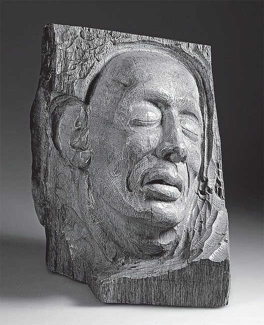 Кто-то из заключенных концлагеря усматривал связь между участью старого дуба и судьбой нацистской Германии, летом 1944 года катившейся к гибели. Около полудня 24 августа 1944 года в небе над лагерем показались сразу 129 американских самолетов. Сбросив тысячу авиационных и зажигательных бомб, американцы успешно уничтожили военный завод, примыкавший к бухенвальдскому лагерному комплексу. Этот завод и был их главной целью, но были неизбежны и сопутствующие потери: сотня эсэсовцев, почти четыреста заключенных – и старый дуб, испепеленный огнем во время налета[8]. Лагерное начальство распорядилось срубить дерево и распилить его на дрова, но Бруно Апиц – коммунист, находившийся в лагере с момента его основания, – сумел тайком пронести в барак целый чурбан из сердцевины ствола. Рискуя жизнью (и выставив товарищей на караул), Апиц высек в древесной глыбе барельеф в форме посмертной маски. И назвал его Das letzte Gesicht (“Последнее лицо”).