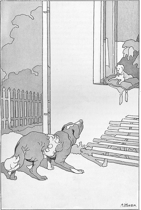 Собаке время подоспело Произвести щенят на свет; А между тем разумно это дело Она заранее обставить не сумела: Час близок, а у ней и крова даже нет, Где б отдохнуть могло ее больное тело. Вот приползла она к соседке в конуру. «Родная, – говорит, – ей-ей сейчас помру! Ох! одолжи хоть только на недельку Свою постельку». Соседка сжалилась и из дому ушла, А гостья временно у ней расположилась. Меж тем неделя протекла, И к дому своему хозяйка возвратилась. «Голубушка моя, сама хоть посмотри, – Вновь замолила гостья со слезами, – Щенки мои малы, чуть шевелят ногами, Уж потерпи еще недельки две иль три!» Соседка снова просьбе уступила И чрез условный срок Вернулася опять в родной свой уголок.Но тут уж гостья ей с рычаньем отворила И молвила, с зубами напоказ: «Уж ты не гнать ли хочешь нас?!Что ж! я тотчас уйду со всей моей оравой – Мои щенки теперь умеют уж кусать. Но раньше ты изволь-ка доказать Зубами нам на эту будку право!»Что плуту одолжил, своим уж не считай – С ним наживешь лишь хлопоты да муку. Неблагодарному лишь кончик пальца дай – Он заберет себе всю руку.