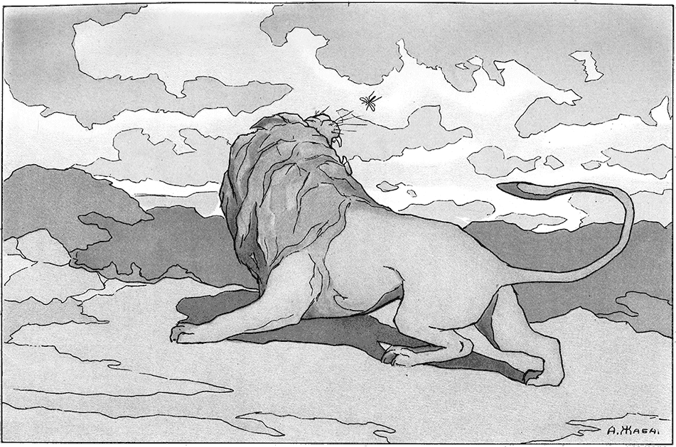 За кроликом следя в полете зорко, Охотилась Орлица. На пути Ему Жука попалась норка.Плохой приют, – но где другой найти?И что же? Вопреки священнейшему праву, Свершить над кроликом расправу Готовилась Орлица. Вдруг Заговорил, вступаясь, Жук: «Царица птиц! Презрев мои моленья,Ты взять вольна его, безжалостно сгубя; Но пощади меня от оскорбленья, Даруй бедняге избавленье, О жизни молит он тебя, –Иль пусть и я за ним погибну следом: Он другом был мне и соседом». Юпитера Орлица, ни одним Не отвечая словом, В жестокосердии суровом, Жука крылом своимСтряхнула прочь, глуха к его воззванью,И, оглушив, принудила к молчанью, – А кролика похитила. Тогда, В отсутствие ее, орлиного гнездаУспел достигнуть Жук, задумав месть такую: Он самую ее надежду дорогую – Все яйца нежные разбил. Гнев и отчаянье Орлицы Не ведали себе границы;А в довершенье зла враг неизвестен был, И жалобы ее лишь ветер разносил. Так целый год жила она бездетной, Весною же гнездо свила на высоте.Увы! Была предосторожность тщетной, И Жук, в места пробравшись те, Ей мстя за кролика, все яйца уничтожил. Вторичный траур потревожил Надолго эхо гор. Во избежанье бед, Та, кем несом был прежде Ганимед,К царю богов с мольбой явилась неуклонно И яйца принесла Юпитеру на лоно: Воистину тот будет смел, Кто б унести оттуда их посмел! Но враг прибег к иным расчетам, Запачкав плащ Юпитера пометом;И тот, стряхнув его, смахнул и яйца прочь.Но тут пришлось Юпитеру невмочь От ярости разгневанной Орлицы. Она грозила: с этих пор Бежать навеки из столицы, Покинув службу царскую и двор.Юпитер промолчал, но учинил разбор. Перед судом явился Жук, и смело Он изложил, как было дело, – Вина Орлицы ей доказана была.Но примирить врагов явилось невозможным, И царь богов, решеньем осторожным, Постановил, во избежанье зла: Чтоб яйца свои всегда несли Орлицы Весною раннею, пока лучом денницы Не согреваемы, как сонные сурки, Спят зимним сном своим Жуки.Лев и Комар