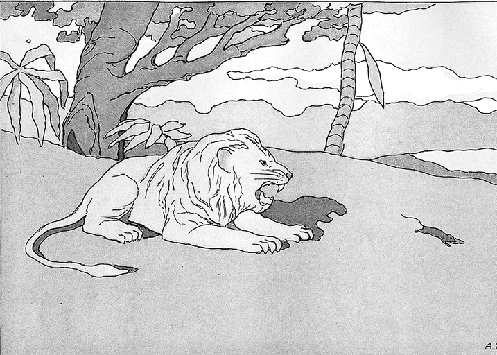 Погонщик двух Ослов с поклажей в город вел. Один Осел,Хвостом махая, шел походкою веселой: Он нес сухие губки на спине, – А всякий знает, как легки оне.Другой едва ступал под ношею тяжелой:Навьючили бедняге соли целый воз, И он плелся, повеся хвост и нос.Шли долго путники, и вот – дошли до броду. Сев на Осла, что губки нес,Погонщик пред собой погнал другого в водуИ начал путь ему указывать кнутом; Но наш Осел упрямого был нраву И пожелал устроить переправу Своим умом. Забрал он влево, в яму оступился И вместе с солью в воду погрузился. Беда! Ослу пришлося плыть. Гребет он сильными ногами,Пыхтит, и фыркает, и борется с волнами; А плыть далёко… как тут быть?!Но, видно, сжалилось над бедным Провиденье:Он в ноше чувствует большое облегченье –Растаяла вся соль, и радостно ОселС пустым мешком доплыл и на берег взошел.Погонщик между тем со страху за скотинуИ своему Ослу ослабил повода, А этот, видя, что вода Освободила друга от труда,Недолго думая, бух вслед за ним в стремнину.Но тут свершилася нежданная беда: Водою губки мигом напиталисьИ стали, как свинец, тянуть Осла ко дну.Погонщик мой взревел, Осел ни тпру, ни ну,И оба с жизнью бы наверное расстались,Когда б не подошли на помощь рыбаки.Не так же ль действуют иные дураки, Которые в делах своих не рассуждают,А только в точности счастливцам подражают.Лев и Мышь
