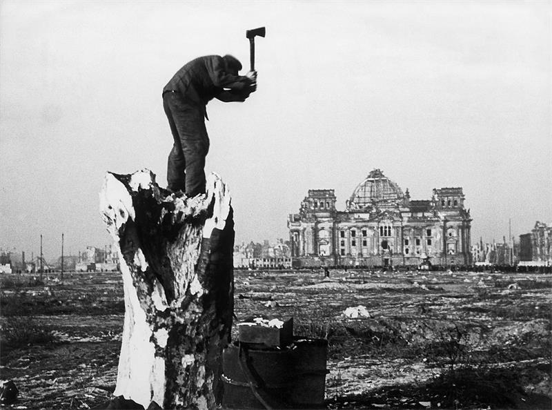 Как выжить в большом городе: берлинец заготавливает дрова. Парк Тиргартен вырублен почти подчистую