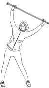 Итак: возьмись за палки для ходьбы пошире (точно шире, чем ширина плеч), выпрями локти. Одновременно со вдохом подними руки с палкой над головой. С выдохом наклонись в одну сторону, затем, с вдохом, вернись в исходное положение, и, снова с выдохом наклонись в другую сторону. Спешить здесь не нужно. Спокойно дыши, спокойно наклоняйся из стороны в сторону. Примерно 15-20 таких неспешных наклонов будет достаточно.