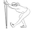 (палка нужна здесь в качестве опоры, никакой дополнительной нагрузки она не несет). Сделай широкий шаг вперед одной ногой, поставь стопу на пятку, носок потяни на себя и постарайся выпрямить ногу насколько, насколько это возможно. Нога, которая осталась позади, может сгибаться настолько, насколько это необходимо. Поставив палки за пределами стоп, понемногу наклоняйся к прямой ноге, желательно одновременно с плавным и медленным выдохом. Задержись в этом положении не менее чем на 30 секунд, затем – поменяй ноги. Здесь “тянется” нога по “задней поверхности”. Это же упражнение используем и для завершения занятия.