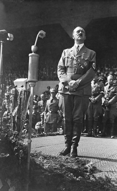 Канцлер Германии Адольф Гитлер выступает с речью перед активистами молодежной организации гитлерюгенд в 1934 г.