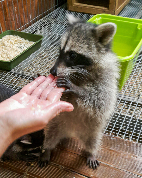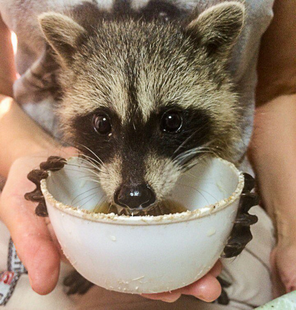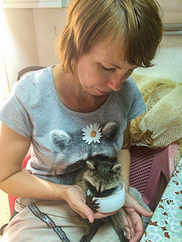 Разве можно думать о плохом, когда енот-полоскун Мартин захватил в плен твою руку, обхватив всеми четырьмя лапами и лижет пальцы. Он благодарит за вкусный завтрак, за почесушки под шеей, где ему особенно приятно.