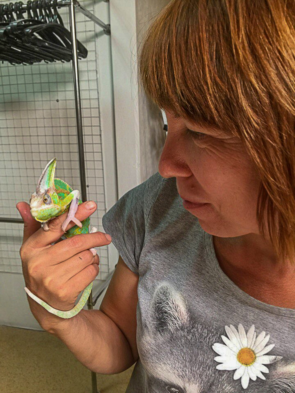 Еще моим любимчиком был хамелеон. Он не менял цвета, как перчатки, потому что это миф. Дело в том, что хамелеоны делают это в зависимости от настроения и физиологического состояния. Наш красавчик всегда был в хорошем настроении, поэтому окрас его не менялся. Немало хлопот нам доставляло кормление хамелеона, потому что он подолгу не мог сфокусироваться на сверчке или таракане.