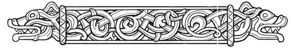 Деревья становились выше, а дома – причудливее. Ситрик с интересом поглядывал кругом. Каждая часть дома, каждое брёвнышко стены было украшено, а на дверях торчали засовы в виде витых звериных голов. Под коньками крыш висели щиты, расписанные жёлтым и белым, и в узорах краски угадывались очертания огня.