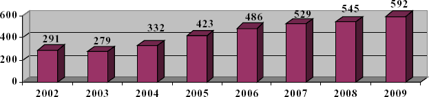 Рис. 1. Динамика выявленных ФБР случаев корпоративного мошенничества (2002–2009 гг.)