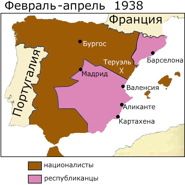 На текущий момент карта военных действий в Испании выглядела следующим образом:
