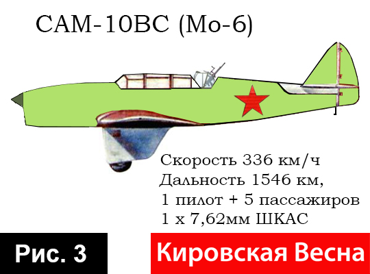 Не менее интересен и опытный самолет САМ-10. Основные выводы государственной комиссии ГНИИ ГВФ об испытаниях САМ-10 с 5 июля 1938 года по 9 августа 1938 года: