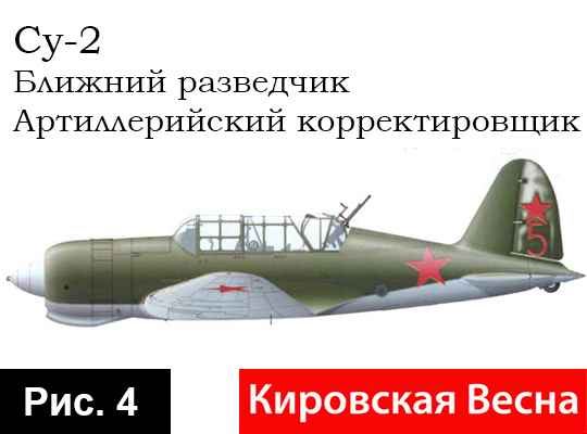 Забегая вперед, отметим, что в альтернативной реальности «Кировская весна» его производство не прекращается в 1942 году. Напротив, после снижения численности самолетов-разведчиков Р-10 в войсках в результате боевых и небоевых потерь 1941 года, именно Су-2, ритмично производящийся с 1942 года на авиазаводе № 292 в Саратове и последовательно получающий все более мощные моторы, становится основным ближним разведчиком ВВС СССР в годы Великой Отечественной войны.