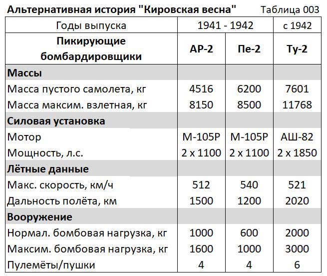 В нашей реальности в 1940 году был произведен один Пе-2. В период с 1940 по 1941 годы промышленность изготовила 1611 бомбардировщиков Пе-2, 60 разведчиков Пе-2Р и 196 истребителей Пе-3. Производство же пикирующего бомбардировщика Ар-2 прекратили после выпуска в первой половине 1941 года 122 самолетов. До конца 1941 года не был произведен ни один бомбардировщик Ту-2.