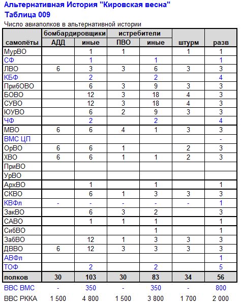 В альтернативной реальности «Кировская весна» суммарное число боевых самолетов по округам основывается на числе авиационных полков.