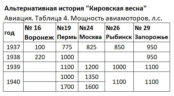 Рост мощности авиационных моторов по годам сведен в таблицу 4: