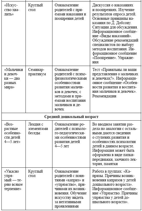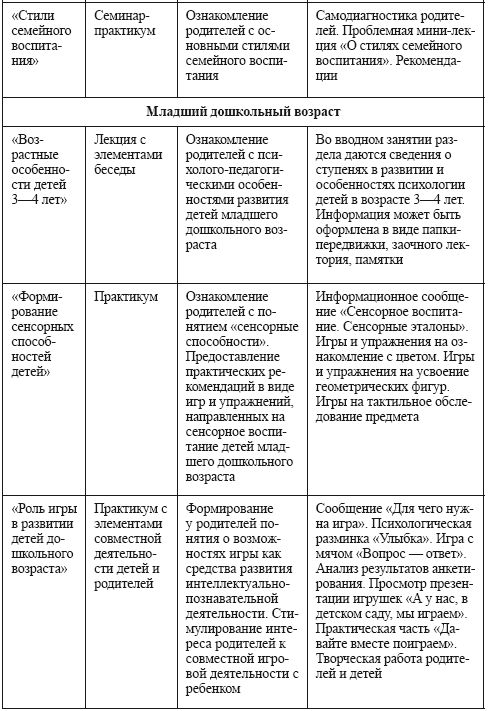 Программа рассчитана на работу с родителями воспитанников, начиная с группы раннего возраста, разработана для каждой возрастной группы ДОО.