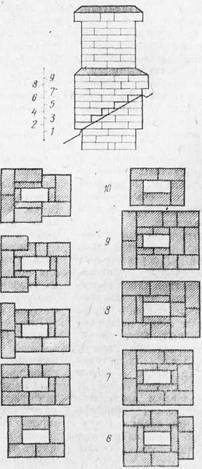 Часть д ы м о в о й т р у б ы, находящаяся между корпусом печи и разделкой у потолочного перекрытия, называется шейкой, ее минимальная высота – три ряда кирпича плашмя.