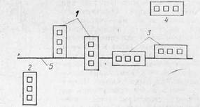 Рис. 7. Положение дымовой трубы ка крыше: 1 – наилучшее; 2 – допустимое; 3 – нежелательное; 4 – весьма нежелательное; 5 – конек крыши
