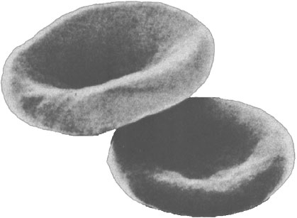 Рис. 22. Нормальные эритроциты в форме двояковогнутого диска