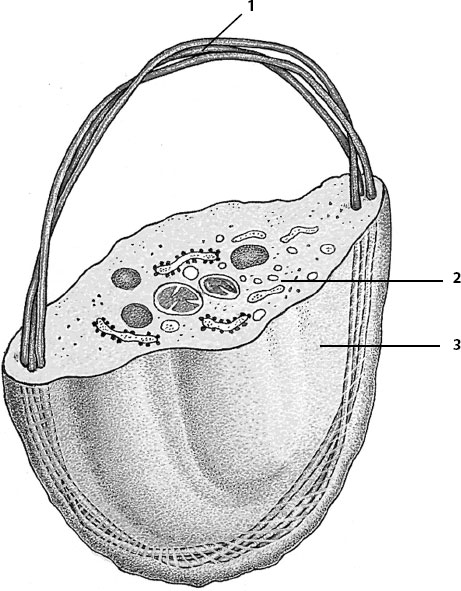 1 – пучок микротрубочек; 2 – грануломер; 3 – гиаломер
