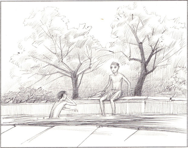 Отдохнув, мы начали плавать, плескаться и развлекаться, не упуская ни одного из удовольствий, которые можно было получить в бассейне. Мы то плавали наперегонки, то ныряли, стараясь ухватить друг друга за ноги или усесться верхом и самому вынырнуть, а сопернику не давать.