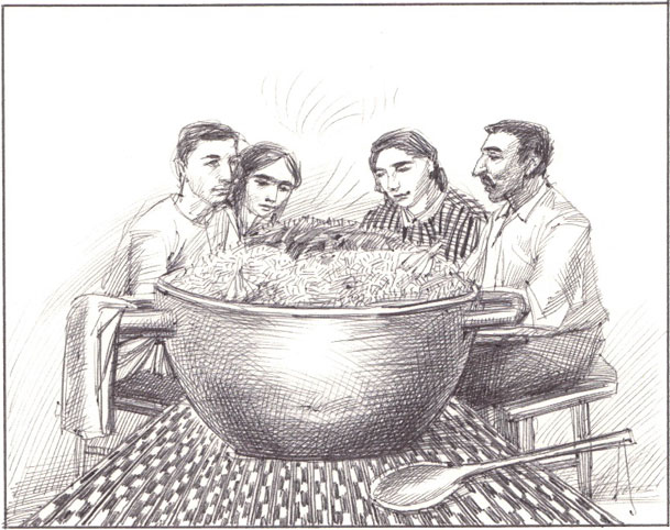 Сегодня Мария подала особенно вкусный сырканиз – это что-то вроде плова, только с горохом. Отец, потянувшись к лангари, большому блюду, из которого мы все ели, сказал: