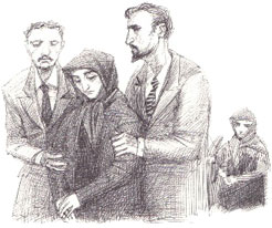 Хотя у подъезда в день похорон собралось много народу, было очень тихо. Говорили шепотом, никто не оплакивал покойника. Не кричала и не плакала и мать Ильяса. Но лицо ее я запомнил. Оно было совершенно неподвижное, как неживое. Глаза запали, обведенные черными кругами. Ее поддерживали с двух сторон, но шла она все равно еле-еле. Вынесли носилки. На них лежал наш бедный друг, закутанный в темную ткань. И все это – в тишине, без музыки, без плача и горестных выкриков. Так странно было при таком скопище народа не слышать ничего.