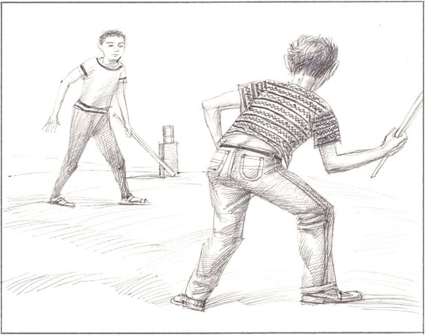 Неподалеку от подъезда на площадке за тротуаром все уже было готово для игры. Очень старательно и четко были прочерчены примерно в двух метрах одна от другой семь параллельных полос. Первая была «солдатской», каждая последующая обозначала очередной офицерский чин, кончая генеральским. Добраться до этого высокого звания – вот цель игры. Перед последней, генеральской линией установлена на кирпичах жестяная банка. Собьешь ее своей палкой-битой, вернешься к тому же невредимым с поля боя – заслужишь очередной чин. Это далеко не так просто, можете мне поверить. Мальчишки – большие мастера придумывать сложные военные игры. Разбитые коленки, синяки и прочие ранения никого не пугают. Они только приносят славу…