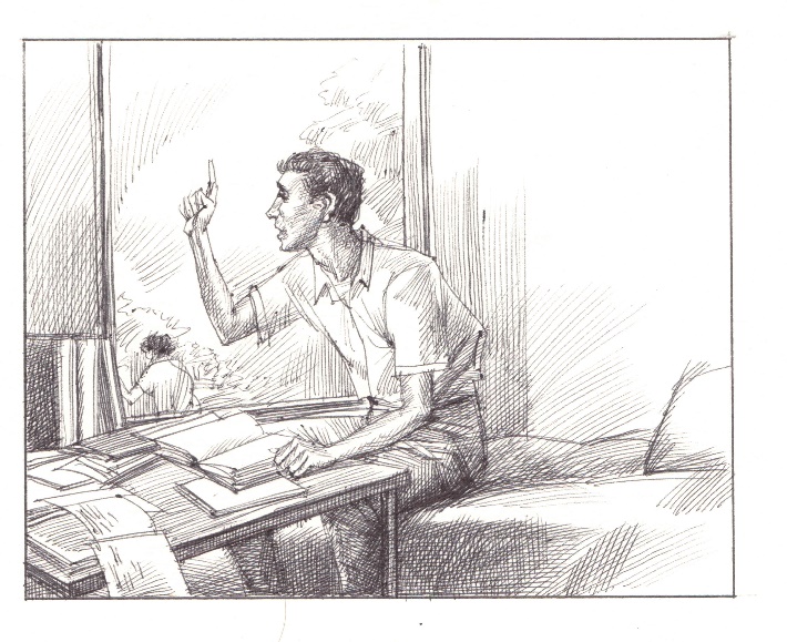 And I read very slowly, pretending that I was trying to delve into that very simple rule. Good heavens, I had figured out all those trifling rules and problems myself at home long ago. That was definitely not what I came to Larisa’s for. Should I have turned down such luck? So, I did my best to pretend to be a dimwit, and I made mistakes in problems. Then Larisa bent so far over the desk that I could feel her breath and the smell of her hair, passed her pencil over my notebook and explained to me how to solve a problem.