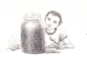 Grandma moved the jar closer and ran a teaspoon around the upper layer of the thick, almost black, grainy preserves very carefully. The spoon filled, and the surface of the preserves remained smooth. After she had scooped out enough, Grandma transferred it onto her tongue and savored it with her eyes closed, moaning and rocking her head from side to side. Perhaps she did it only when I was around so I would remember that she was a sick person and ate preserves not for pleasure but for medicinal purposes.