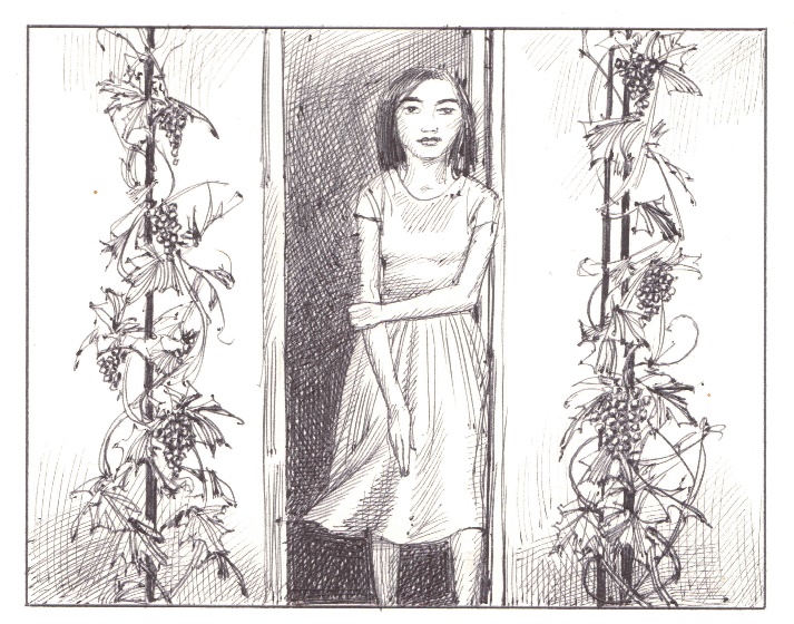 We chatted, reminisced, and laughed, and we no longer heard the music that had accompanied us as we walked from the gate to the house. As I suddenly turned around, I noticed a short thin girl leaning against the doorpost.