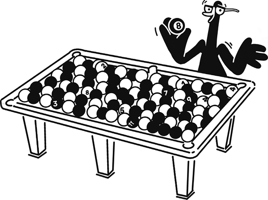Давайте для наглядности представим бильярдный стол – это будет пространство, а шары выступят в роли частиц. При ударе двух шаров повышается температура системы, то есть стола и шаров. Бесконечная плотность – это ситуация, когда весь стол плотнячком забит этими шарами, и даже между ними что-то вроде песка. Смогут шары биться друг об друга? Фигушки. Откуда тогда температуре взяться? Правильно, неоткуда. А вот по уравнениям она там есть. И не какая-то там приемлемая, а целая бесконечность… А еще бесконечная плотность означает, что вещество настолько плотное, что даже объема не должно занимать. То есть это со всех сторон точка безразмерная – пространства в принципе может и не быть в такой точке, и сама эта точка может не находиться в пространстве, как мы его понимаем. Да, свихнуться можно.