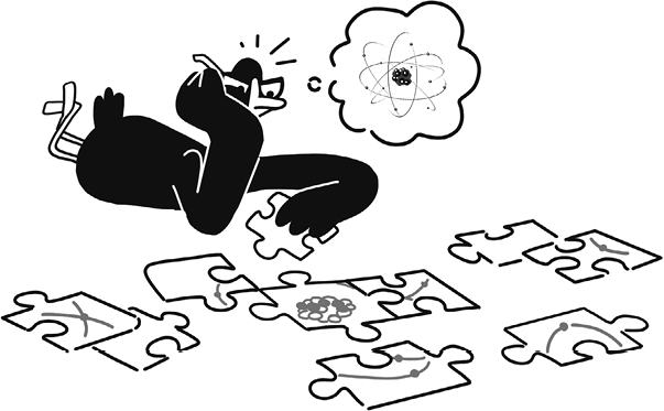 И в это же время начался этап инфляции. Это мы уже обсуждали. Из-за отделения гравитации само пространство таки расперло во все стороны, и вместе с ним то самое очень горячее и очень сжатое вещество размазало повсюду. Так оно и остыло. Помните, если в детстве чай был очень горячим, бабушка или родители переливали его в блюдечко, и там он остывал быстрее. Примерно так же было и с веществом. Только чай охлаждался в рамках одного и того же жидкого состояния, а во Вселенной вещество переходило из фиг пойми какого состояния планковской эпохи сначала в кварк-глюонный суп, который состоял из кварков и глюонов (кварки – это самые маленькие элементы вещества, о которых мы сейчас знаем, а глюоны – это тот цемент, который склеивает их уже в более тяжелые частицы), а позже из кварк-глюонного супа в процессе остывания и получились наши протоны и нейтроны. Да, мы перескочили этап адронизации и бариогенеза, но давайте оставим жуткую жуть. В этот момент как раз и отделилось сильное взаимодействие, которое отвечает за существование составных частиц. Помните глюоны, которые «цемент»? Они и есть переносчики сильного взаимодействия. В общем, представьте, как вы высыпаете кусочки пазла на стол и начинаете их собирать. Постепенно вы отделяете небо, воду, деревья или что вы там собираете. А потом начинаете как раз собирать уже какие-то детали. Края, например. Так же и тут. Сначала все высыпалось по всей Вселенной, потом начало остывать и с этим остыванием терять энергию в каждой точке пространства, что логично. Постепенно начали отделяться взаимодействия, каждое – на своем значении энергий. И потом уже потихоньку вещество стало собираться в кварки, лептоны и всякие бозоны, из которых в какой-то момент собрались уже привычные нам атомы водорода и гелия в разных модификациях. Поговаривают про следы более тяжелых элементов аж до бора, но это сейчас не имеет особого значения. Мы же не настолько фрики, чтобы углубляться в эту историю, да?