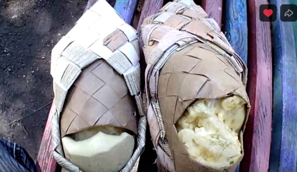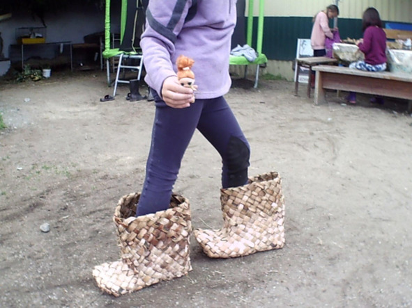 так вот, мы сняли колодку. у нас получился вот такой лаполь внутри у него береста и снаружи тоже береста.