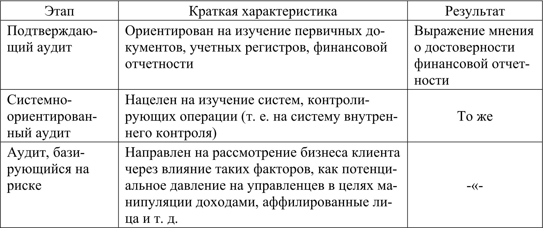Системно-ориентированный аудит дает возможность исследовать системы, которые контролируют операции. Доказано, что если система внутреннего контроля работает эффективно, не нужно проводить детальную проверку, так как аудитор может доверять системе внутреннего контроля в выявлении ошибок и нарушений требований законодательства [58]. Недостаток данного подхода заключается в том, что аудиторские процедуры проводятся в отношении организации и эффективности функционирования системы внутреннего контроля, которая ориентирована на проверку работы персонала проверяемого экономического субъекта. Однако таким образом не проверяются действия руководства (администрации). Аудиторские процедуры в данном случае сориентированы на то, чтобы выявить, обманывает ли персонал руководство, а не руководство обманывает инвесторов [58].