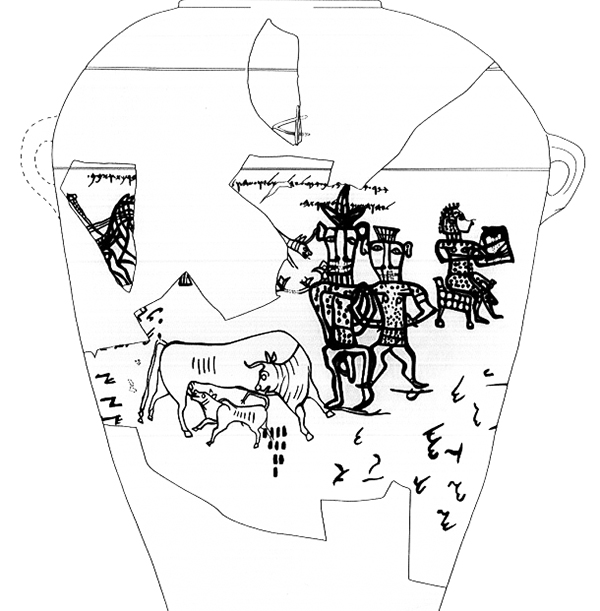На одном из пифосов красной краской выполнены два изображения Беса – египетского божества счастья и удачи, хранителя очага, защитника бедных.