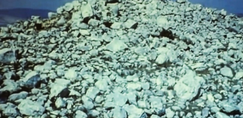 Скриншот с YouTube: груда из белых камней на восточном склоне горы Эйвал