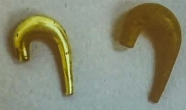 Скриншот с YouTube: Две серьги (золотая и серебряная), найденные на объекте
