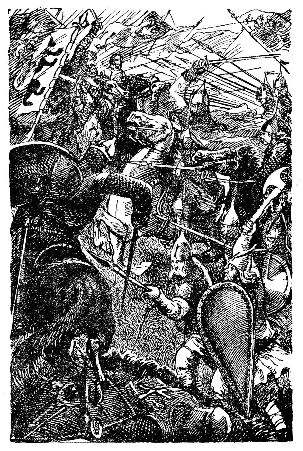 А там уже сшиблись. От треска и лома копейного стал будто гром. И падали мертвые, как снопы…