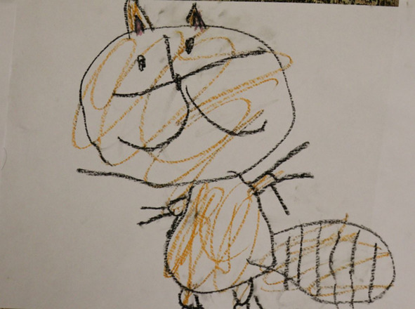 Таня: «это зверек – наполовину лиса, наполовину кот, наполовину лев. Называется прадабазавар». Зверь из трех половин, ну прямо я с девчонками. У Тани что ни рисунок, то прадабазавар.