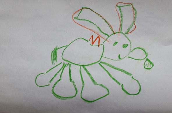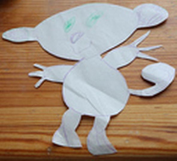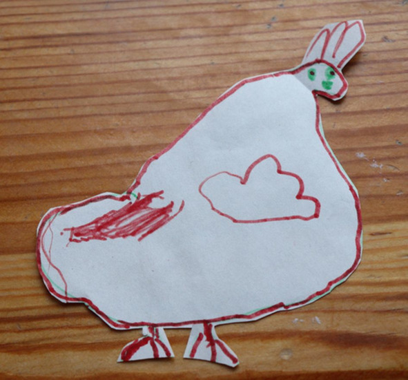 А Таня рисует очень выразительных чудиков, которых бабуля для пущей выразительности вырезает, и девочки играют в эти художества, как в самые интересные игрушки.