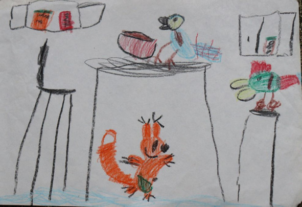 Таня положила себе на спину подушку для табуретки, сказала: «я улитка», и ползает на четвереньках. И громко негодует: «я улитка, а панцирь сваливается!!» Потом улеглась на эту подушку сама и продолжила страдать.