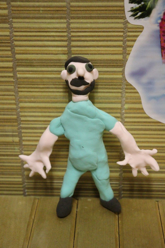 Мы и правда слепили доктора – Маха смешивала и разминала кинетическую глину, чтобы получить нужный цвет и желаемую пластичность, а мелкие детали, конечно же, лепила я. И надо было быстро, пока материал не засох. А когда доктор был готов, девочки стали в него играть, и я только и слышала: «я засунула доктора в кабину», «доктор помялся, мама! У него ботинки помялись!». Потом они случайно оторвали ему палец, и пришлось сделать новый. В общем, сильно надеюсь, что у нас не получилась нечаянно кукла Вуду. Судьба игрушечного доктора очень непроста.