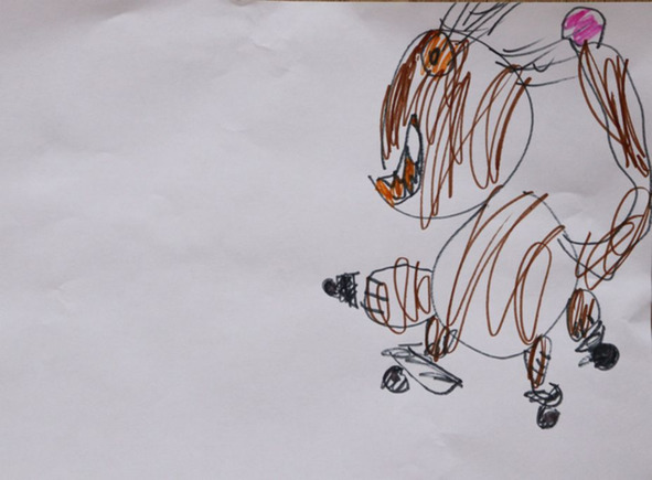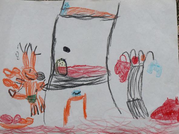 Фильмы про животных и мифы Древней Греции делают свое темное дело – некоторое время назад Таня мне с упоением рассказывала про человека с бычьей головой, а сегодня нарисовала кого-то, а Маха объяснила: «изобразили. Это Бразилия, какое-то животное с человеческой головой». Потом Таня нарисовала нечто, похожее на зубастого кролика с красными глазами, и сказала: «это я в маскировке. Это я помаскировалась». Таня видит себя очень реалистично; она и без маскировки точь-в-точь такая же. Вручила мне рисунки со словами: «это я сделала для всей нашей семьи». О, я ценю. А Маха рисует только сиреневые абстракции и говорит: «я хотела нарисовать ничего». Главное – правильная постановка цели.