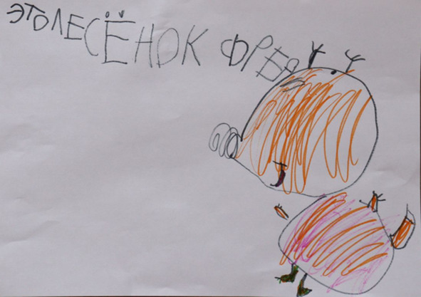 Таня насмотрелась свинки Пеппы и сотворила очередной шедевр, и подписала его: «мистир Кортошка».